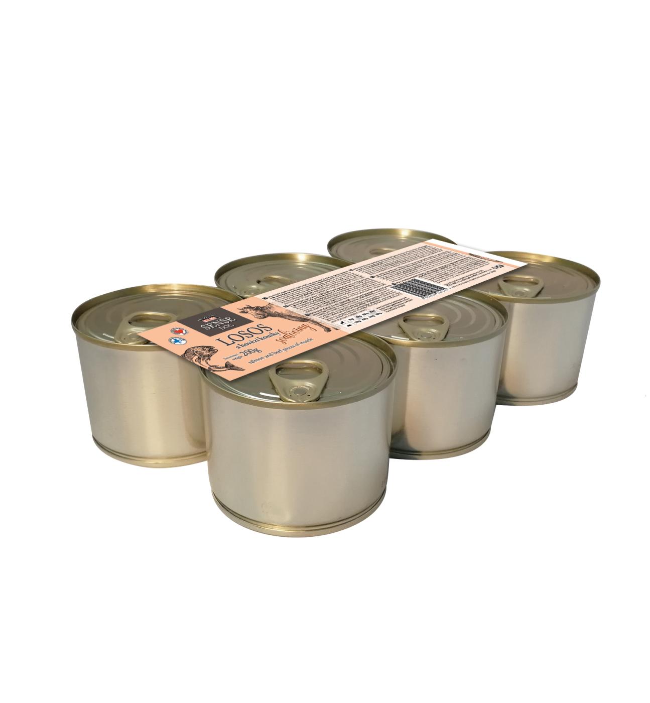 Obsahuje 50 % mletého lososa a 50 % kúskov svalového mäsa. Ideálne pre citlivé a hladné psy.