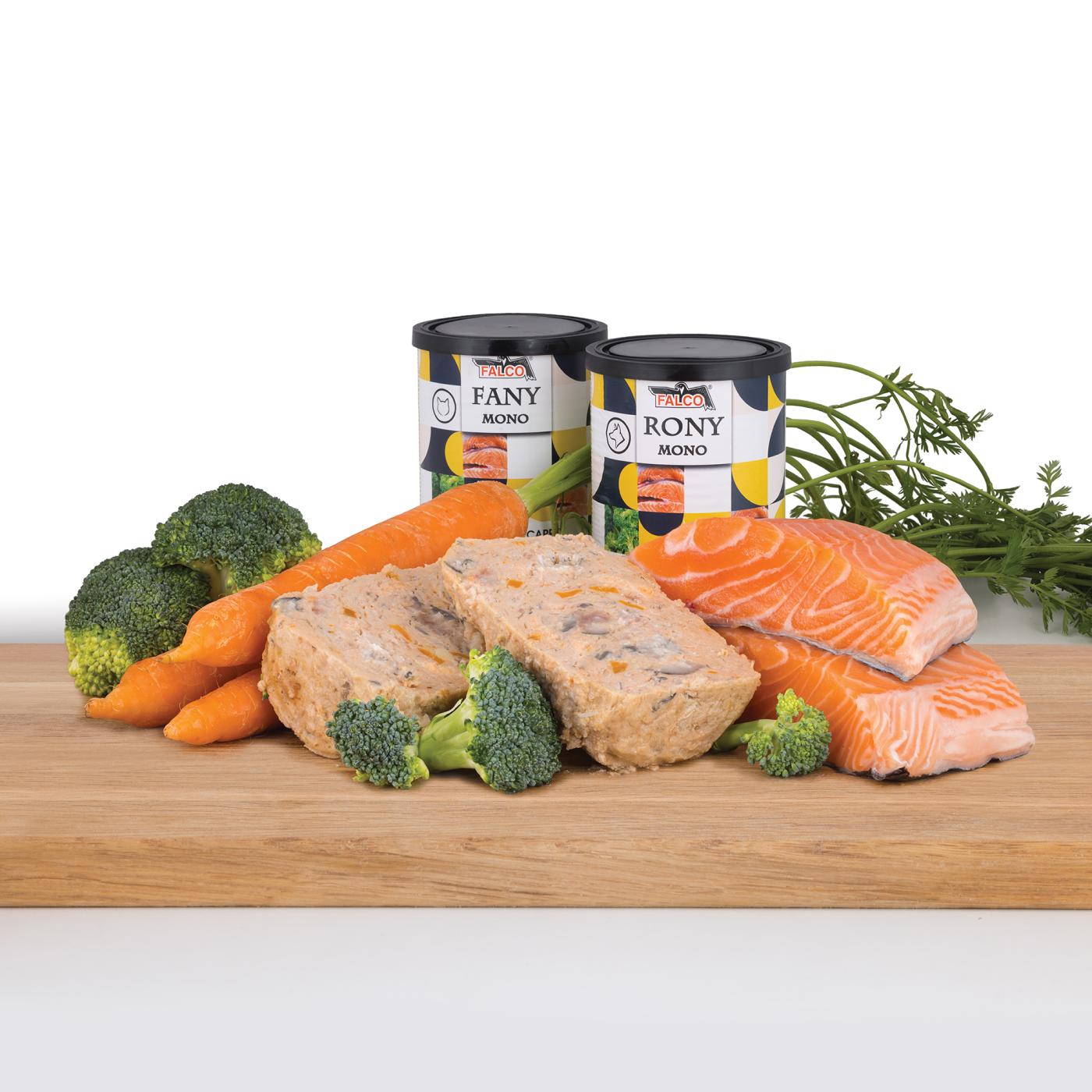 Zloženie: 90 % losos, 7 % mrkva, 3 % brokolica