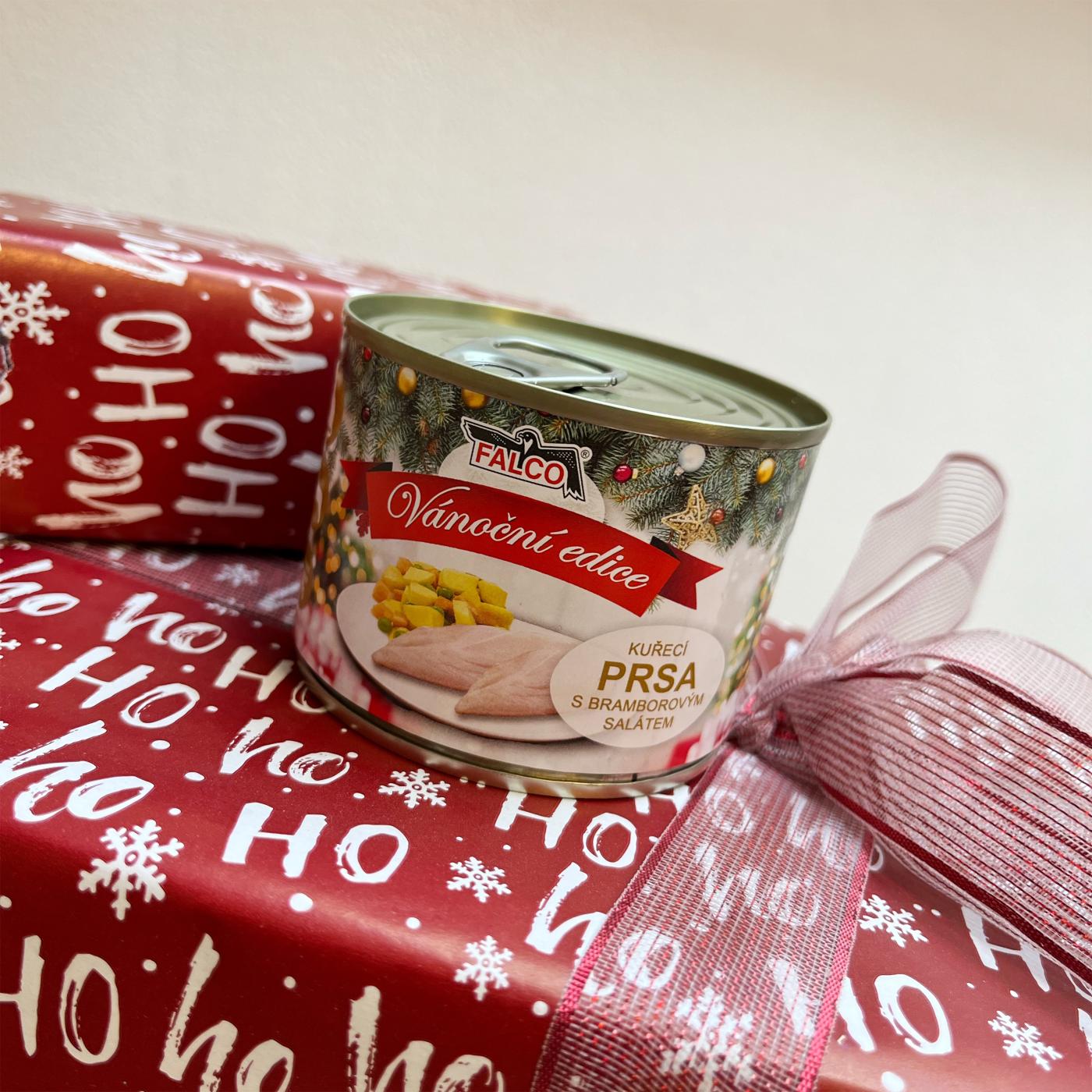 Nie je to len vianočná večera pre vášho domáceho miláčika, ktorý vôbec nemá rád ryby. Toto je vianočná konzerva naplnená 80 % kuracích pŕs a 20 % zeleniny (5 % mrkvy, 5 % hrášku, 10 % zemiakov).