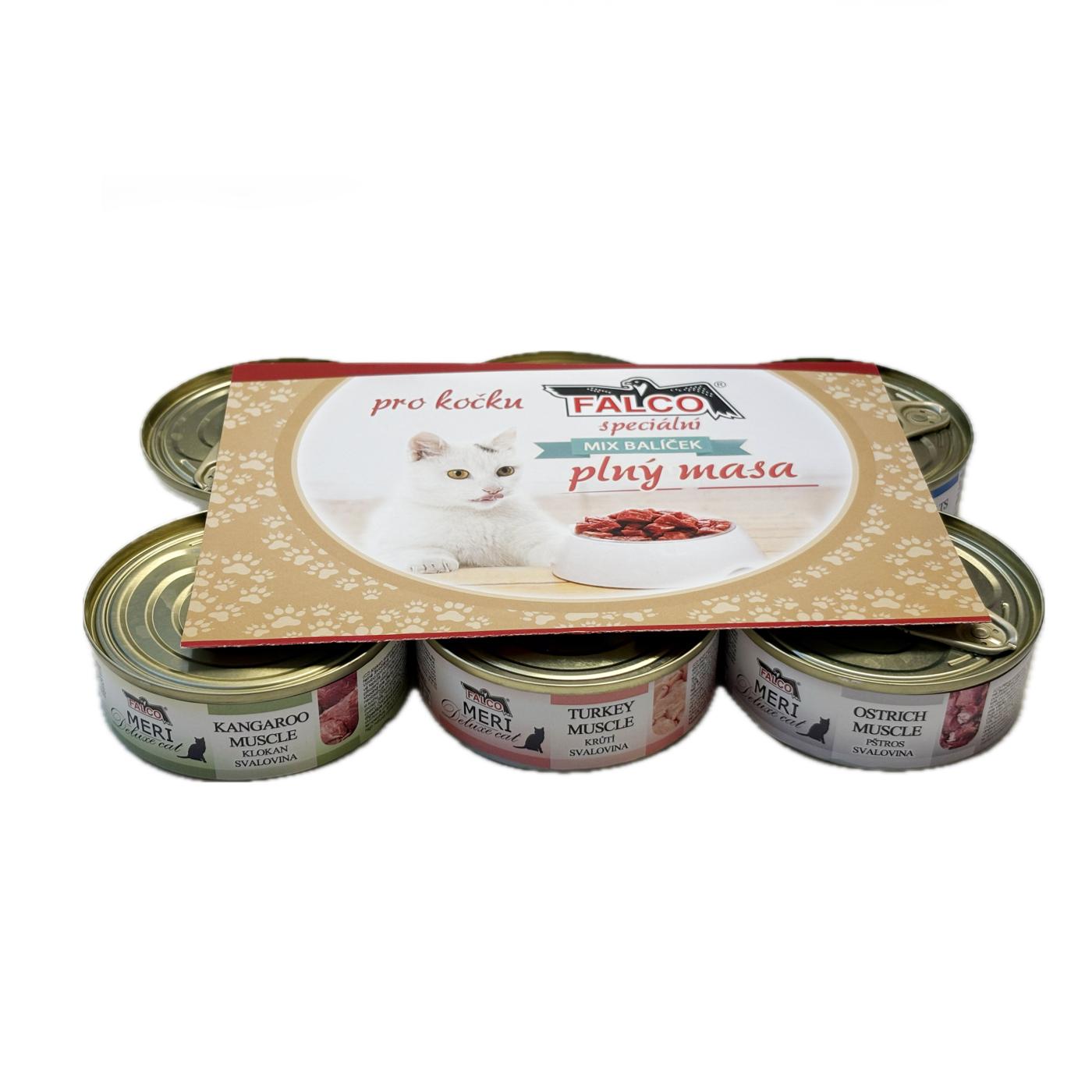 Mix balenie obsahuje 6 ks konzerv naplnených najlepším výberom kúskov mäsa. Jedná sa o 100% mäsové konzervy - klokanie svalovina, morčacie svalovina, kuracie srdce, kuracie svalovina, pštros svalovina a šproty celé.