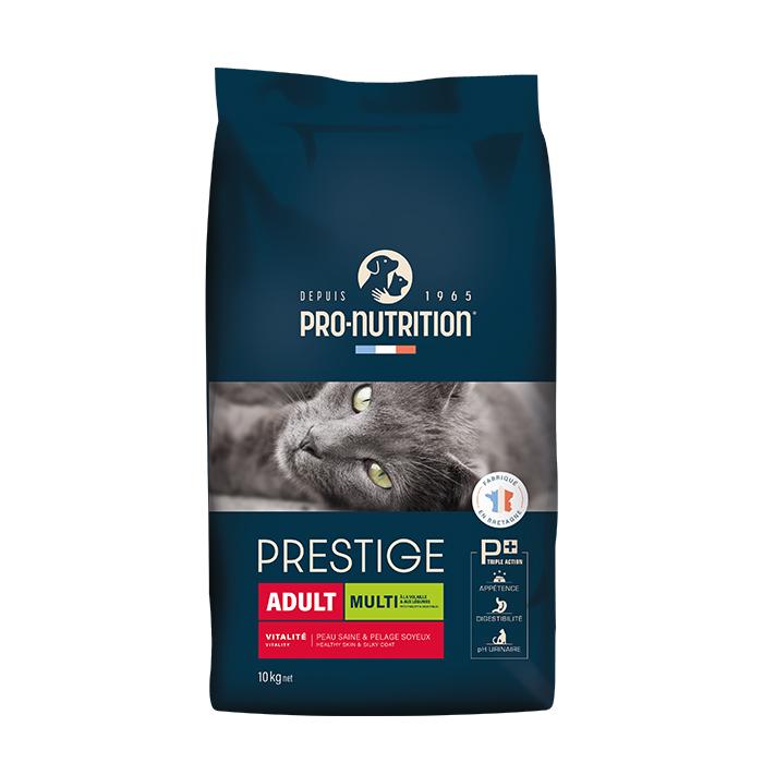 Kompletné superprémiové krmivo pre dospelé mačky všetkých plemien. Vrecko obsahuje 10 kg granúl. Rad krmív PRESTIGE CAT je vyvinutý tak, aby zvieraťu poskytoval optimálne vyváženú stravu a zároveň bol chutný.