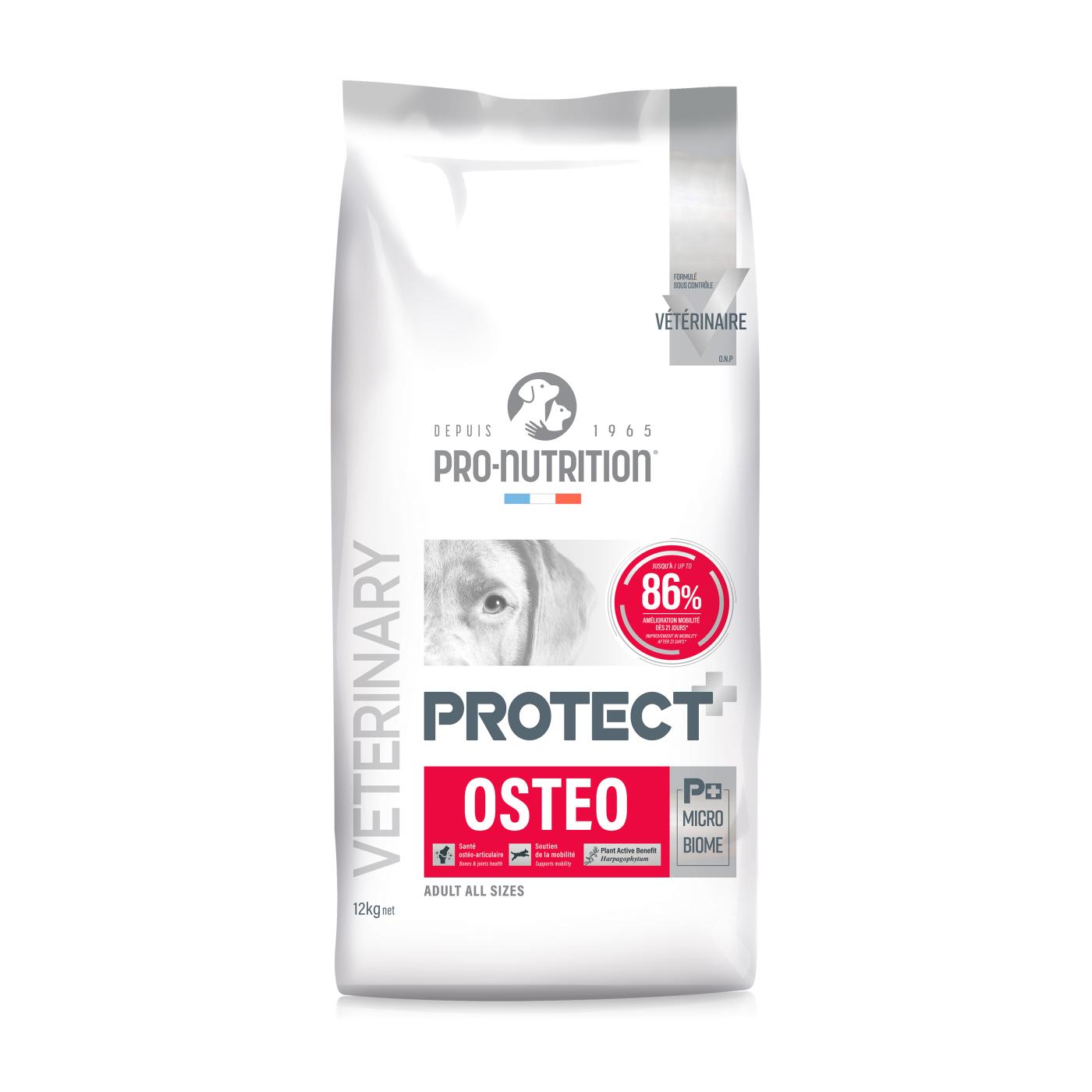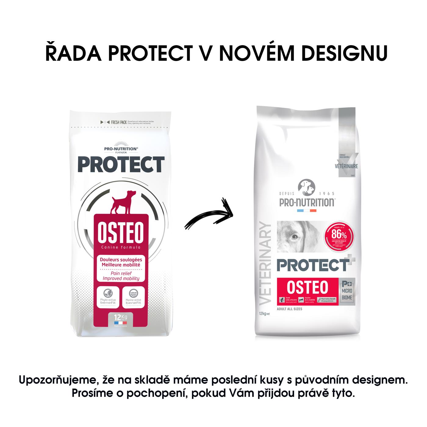 Kompletné diétne superprémiové krmivo pre psy všetkých plemien. Vrecko obsahuje 12 kg granúl. PROTECT osteo je určený pre zvieratá trpiace bolesťami kostí a kĺbov.