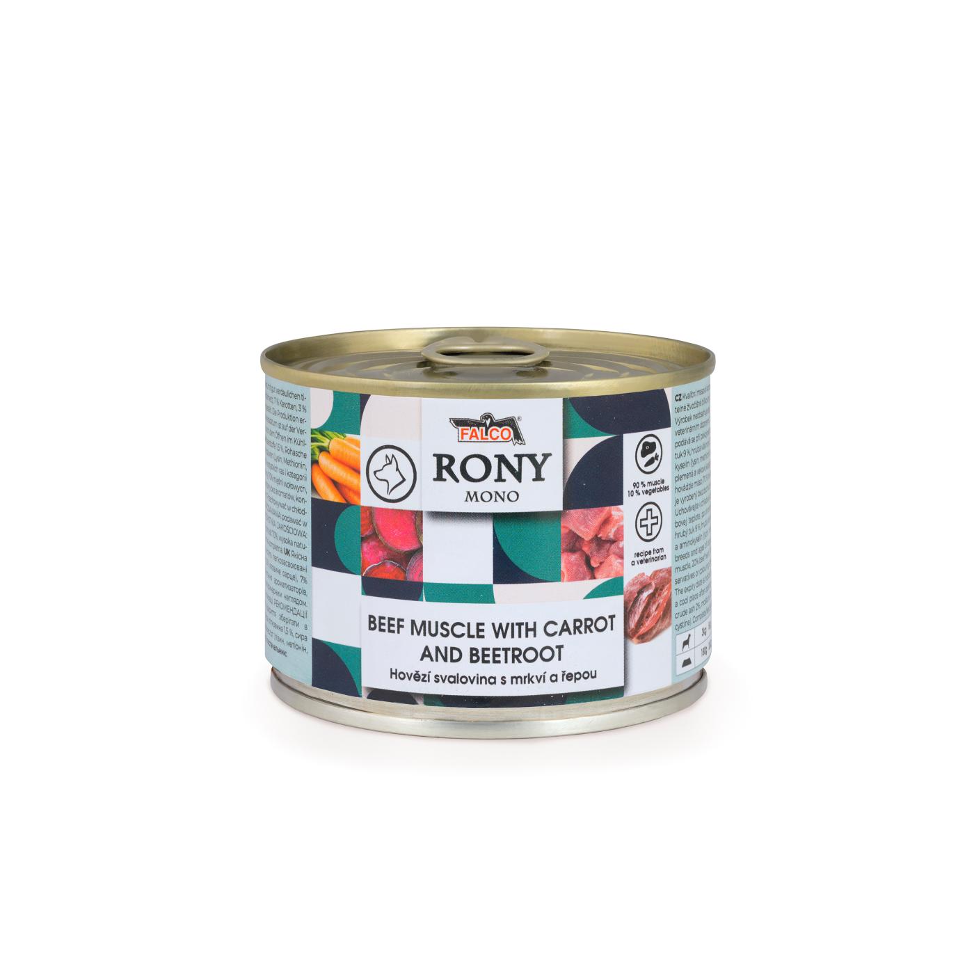 Konzerva RONY MONO je ľahko stráviteľná s vyváženou receptúrou. Vyvážená kombinácia energie, bielkovín a antioxidantov. Konzerva je vhodná nielen pre všetky vekové kategórie a všetky plemená psov, ale vďaka svojmu šťavnatému obsahu aj pre šteňatá, dojčiace suky alebo psy v záťaži. Vhodná na každodenné kŕmenie.