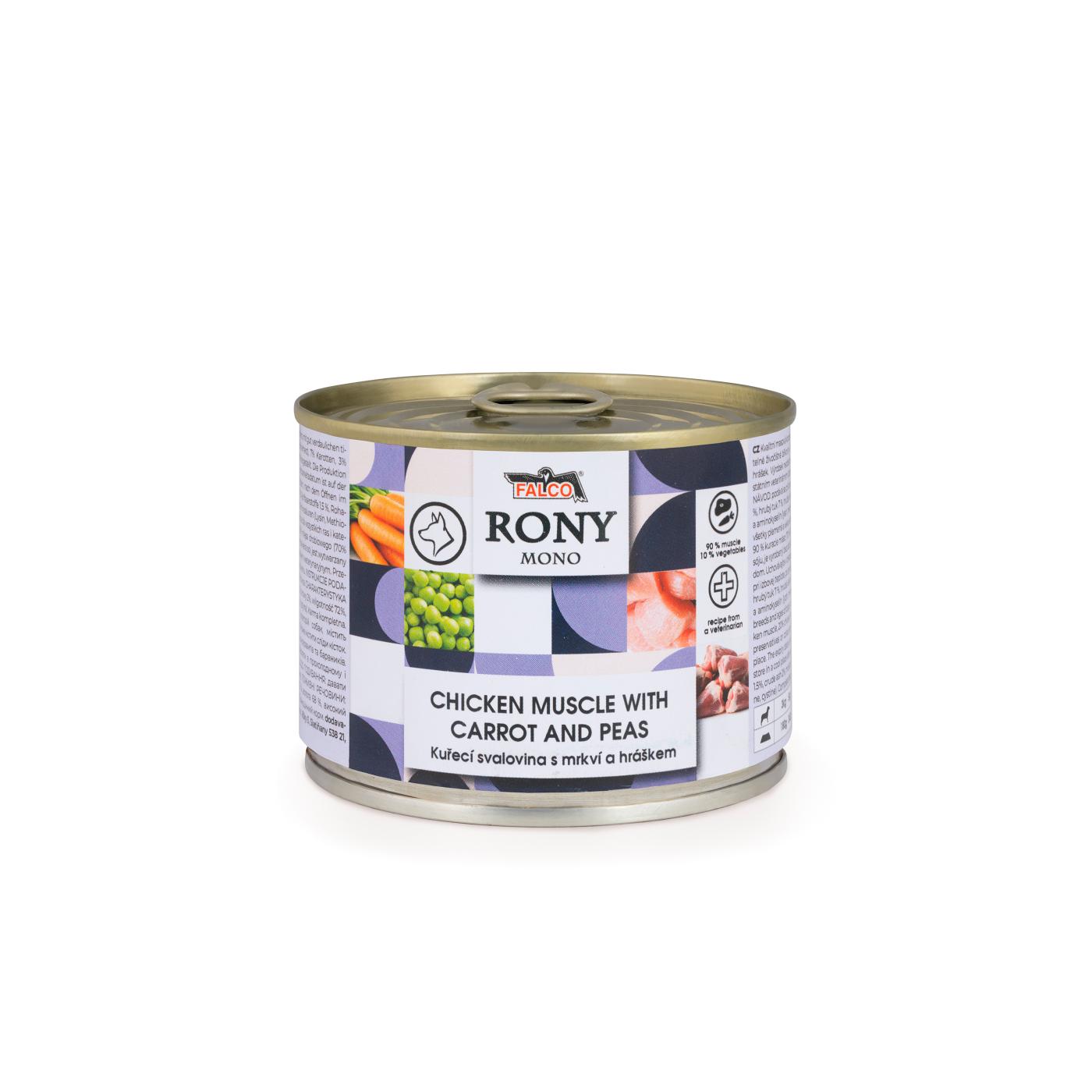 Konzerva RONY MONO je ľahko stráviteľná s vyváženou receptúrou. Vyvážená kombinácia energie, bielkovín a antioxidantov. Konzerva je vhodná nielen pre všetky vekové kategórie a všetky plemená psov, ale vďaka svojmu šťavnatému obsahu aj pre šteňatá, dojčiace suky alebo psy v záťaži. Vhodná na každodenné kŕmenie.