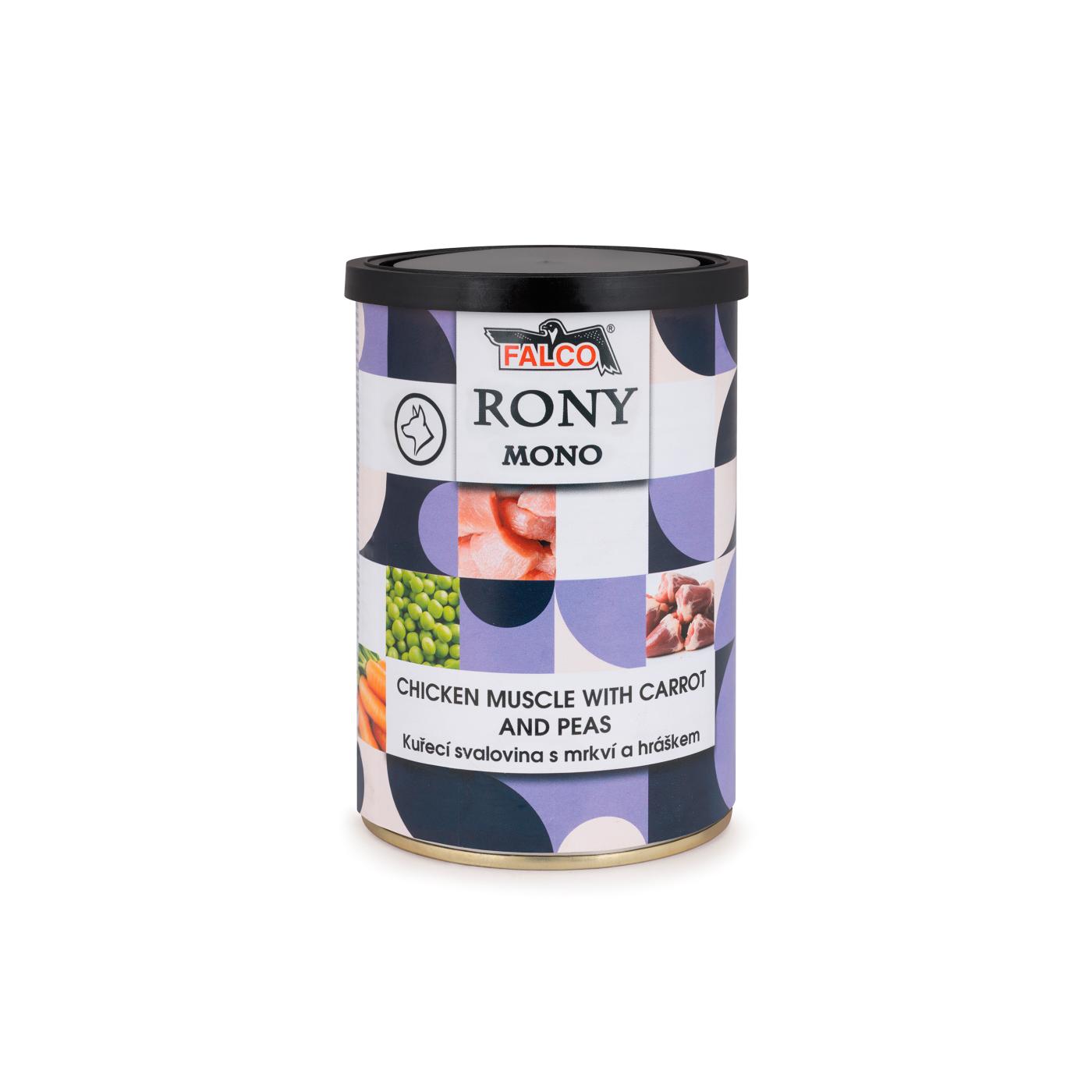 Konzerva RONY MONO je ľahko stráviteľná s vyváženou receptúrou. Vyvážená kombinácia energie, bielkovín a antioxidantov. Konzerva je vhodná nielen pre všetky vekové kategórie a všetky plemená psov, ale vďaka svojmu šťavnatému obsahu aj pre šteňatá, dojčiace suky alebo psy v záťaži. Vhodná na každodenné kŕmenie.